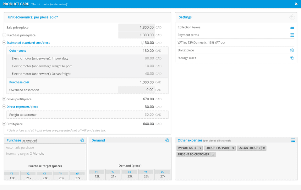 Dive into the costing assumptions for your products right in the product card, with detailed drilldown capability into raw materials, absorption of labor, equipment and overhead.